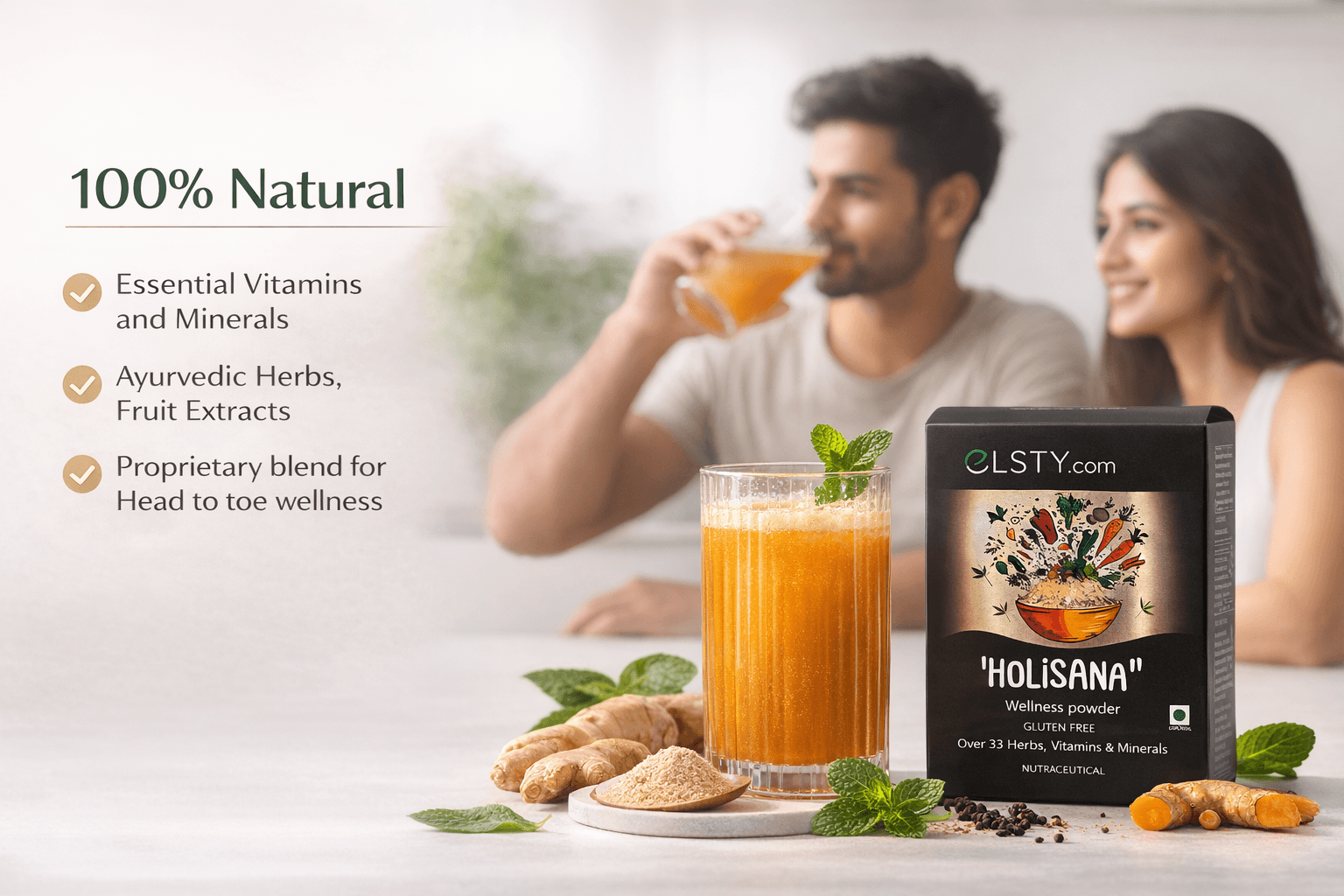 Holisana blends modern nutraceutical science with traditional Ayurvedic wisdom in a proprietary, synergistic formula that makes every scoop work harder for your body. It combines clinically studied vitamins, minerals, and antioxidants with time‑tested Ayurvedic herbs to target oxidative stress, gut health, immunity, energy, and sleep all at once—technical in its design, but simple and fascinating to use as a one‑minute daily ritual.